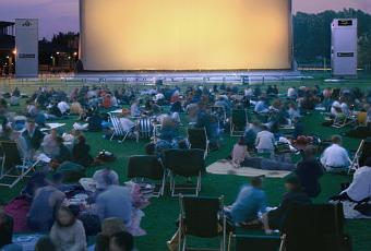 Un écran géant est installé sur une grande prairie, la prairie du triangle. C’est gratuit, facilement accessible. Des transats et des couvertures (les nuits sont fraîches) sont proposés à la location (7e) à partir de 20 H. Les films sont diffusés à la tombée de la nuit.
