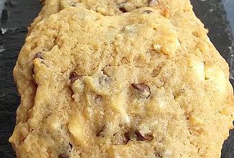 Ajoutez les pépites de chocolat. (j’ai divisé la pâte en deux et incorporé des pépites de chocolat blanc à une moitié et des pépites de chocolat noir à l’autre moitié).