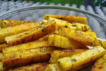 Plus tard j'ai fais du millas, sorte de galette à base de farine de maïs, consommée sucrée. J'ai aussi appris le pain de maïs à l'américaine, le pop corn, les crèmes, et ainsi de suite. Et la polenta, bien sûr. Mais comme je suis paresseuse, j'en choisi souvent de la précuite (2mn de cuisson), que j'améliore. Herbes du jardin (basilic, beaucoup de persil, ciboulette). Fromage, de préférence italien, à pâte dure, de brebis. En gros, environ 250 gr de polenta, 125 gr de fromage râpé, des herbes à volonté, pourquoi pas des tomates séchées en brunoise très très fine, des olives, des anchois...?