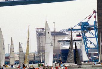 Pour la ptite (et savoureuse) histoire, sur le programme officiel de la course réalisé par "VOILES et voiliers" on pouvait lire ceci: ".../...135 marins, dont trois femmes, s'élanceront du port breton pour une longue chevauchée de 1100 milles.../..."Quand on sait qu'un des sponsors de la course n'est autre que le conseil régional des pays de la Poire, je rigole Jacques , je rigole...