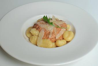 - Répartir les gnocchi dans les assiettes, recouvrir de sauce et disposer des copeaux de parmesan, à volonté !