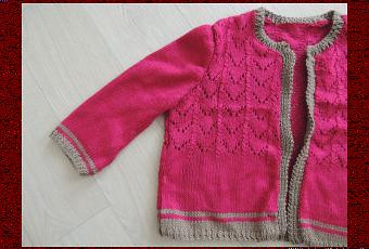 Terminé avec 1 semaine de retard mais terminé quand même! Je voulais absolument avoir terminé ce petit gilet la semaine dernière pour pouvoir l’offrir en direct à Mini Pupuce mais au moment où je l’ai vu il me restait "juste" les manches, les bandes et tout assembler!!! A moins de me greffer deux paires de bras, arrêter de travailler et dormir, je ne voyais pas comment le terminer à temps! Bref, l’important est qu’elle l’aura quand même pour sa rentrée en CP :)