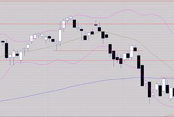 Nous connaissons les raisons qui ont entraîné l'apparition de la grande bougie noire de vendredi; en tous cas, le rebond qui avait réussi à dépasser la résistance des 4375 points a été sérieusement compromis. Si ce rebond est de nature corrective, il aura retracé précisément 61,8%. Nous formons aujourd'hui un marteau qui possède un corps noir, qui reflète l'impossibilité d'avoir pu maintenir une reprise digne du nom après la grande bougie noire. L’influence de cette grande bougie reste donc forte, mais le marteau est bien présent. Sera-t-il confirmé?