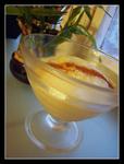 Disposez les dés d'orange au fond des coupes, versez la préparation par dessus. Laissez refroidir, au moment de servir saupoudrez d'un peu de cannelle.