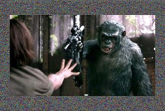 Le blockbuster le plus intelligent de l’année ? Une blague. Ici le méchant singe est forcément borgne et balafré, la femelle a un pendentif autour de la tête ( manque le rouge à lèvre) , et on reconnait à coup sûr le fiston singe grâce à son poitrail scarifié en rouge. Bref, on est presque chez Walt Disney et l’histoire ne vaut guère mieux. On nous l’a déjà raconté ailleurs à peu de chose près : Avatar, Danse avec les loups, Le Dernier Samourai… On nous refait le coup de l’émissaire en territoire ennemi pétri de bonnes intentions, inévitablement contrariées. C’est plein de bonnes volonté et de bons sentiments, ça se laisse regarder, on a droit a toutes les vieilles ficelles du genre, mais inutile de s’attarder sur l’intérêt du script, car l’enjeu du projet n’est pas là. Cette Planète des singes nous raconte un tout autre affrontement: celui des VFX et du vivant. Les effets spéciaux contre les acteurs. Le digital contre l’analogique. Le film s’ouvre d’ailleurs et se ferme sur un même plan: un regard de singe tellement criant de vérité qu’il nous dit « Prenez garde humains, c’est bientôt votre tour d’être singés ». Un promesse que tiendra Hollywood dans les années à venir en produisant des films 100% digitaux et 100 % photo-réalistes à s’y méprendre. On peut leur faire confiance, le stade de l’expérimentation animale dans le domaine des CGI donne des résultats encourageants.
