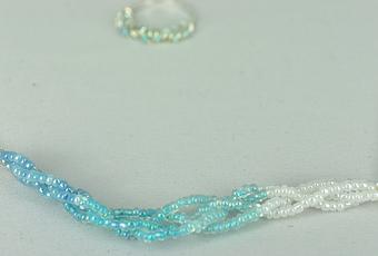 Une parure collier – bracelet dans les bleus, c’est vrai que j’en avais tellement peu… ma collègue s’est gentiment moquée de moi quand je lui ai annoncé ma création en cours !!!