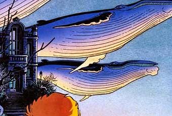 Si tout cela ne suffisait pas à captiver le lecteur, Frank ajoute le personnage de Catherine, jeune étudiante issue d'un monde bien différent de celui de notre héros, et qui remonte l'étrange piste non pas par les rêves et le hasard, mais par la réflexion et l'analyse. Nos deux héros vont-ils se croiser ? Partager leurs conclusions ? Découvrir le pot aux roses ensemble ? Je ne vous le dirais pas car, si vous n'avez pas lu cette BD, ne perdez pas un instant. Si vous êtes sensible à la rêverie, aux mystères, aux histoires incroyables de complexe simplicité, cet album est fait pour vous. Si, comme moi, c'est avec une étrange mélancolie au cœur que vous lisez le mot fin de cette histoire, alors précipitez-vous et dévorez les tomes suivants. Le plus incroyable est que les dessins arrivent à une telle fusion entre le réalisme et la stylisation des visages. Nez rond, tignasse ébouriffée volumineuse, grandes lunettes tout aussi rondes, Broussaille est clairement un personnage non réaliste, prenez son corps, ses vêtements, ses poses et vous pourrez les plaquer dans n'importe quelle BD réaliste. Les dessins si travaillés, si finis au niveaux des décors, apportent le rêve par le mélange de cette ville et de la mer. Pour moi, « Les Baleines Publiques » est une BD maritime, par son histoire, mais aussi par son esprit. Broussaille ne navigue pas sur les flots tel Corto, mais en ville, loin de la mer. Pourtant, le jeune étudiant a l'esprit des aventuriers marins, le rêve et la curiosité au cœur, prêt à se laisser emporter par n'importe quel événement pour tomber dans une grande aventure. Les couleurs si apaisantes, si tristes quand la grisaille se répand partout à certains passages de l'album, si sombres quand les cauchemars s'installent, vous restent en mémoire. Dans leur mise en scène, les auteurs se gardent l'espace des planches pour développer des cases d'une page, d'une demi-page. La promenade de Broussaille dans la ville où il laisse voguer son imaginaire se déroule sur des pages de quatre cases. La scène du cauchemar où l'action se fige tout au long d'une page surdécoupée, là les créatures sortent des limites de la case. Si vous gardez l'œil ouvert, peut-être verrez-vous au détour d'une page, dépassant de derrière une case, un poisson, une nageoire... Et cette fin magique... Je pourrais en dire plus mais je gâcherais les mystères et les surprises de cette belle BD. Broussaille ne vous propose pas un voyage immobile, mais nous invite à penser que la magie et l'aventure peuvent se trouver au coin de la rue tout comme au fin fond des mers du Sud. Aujourd'hui, alors qu'on nous ressasse que les héros se doivent d'être trash, violents, vulgaires ou grossiers, que si vous ne respectez pas cette charte, vous faites probablement de la BD Jeunesse, Broussaille confirme qu'il existe une alternative, une VERITABLE alternative. Comme son confrère Jonathan, non-violent, curieux, Broussaille est un rêveur mais dont la plus grande force est de pouvoir nous emmener dans sa rêverie.