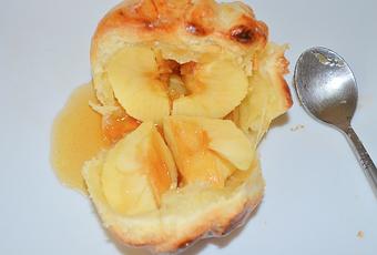 Ce dessert est aussi délicieux avec de la cannelle au centre de la pomme, de la confiture/gelée/compote ! Lorsqu'il est cuit il peut s'agrémenter d'une boule de glace vanille (huuuuuuum) ou de crème anglaise !