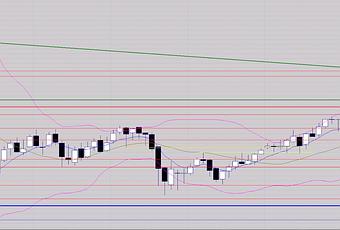 La grande bougie noire formée cette semaine, en perçant le support des 4290 points fait apparaître avec les 3 précédentes une structure en trois méthodes descendantes qui est une figure de continuation baissière (qui confirme l'objectif de baisse indiqué par le graphe mensuel)