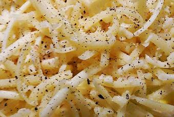 Environ 1 tasse de fromage Cheddar fort (celui de L'Isle-Aux-Grues est excellent)