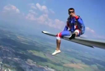 Vous l’aurez compris, il s’agit en réalité d’un base jumper qui a fait une petite session relaxation sur l’aile d’un avion.