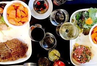 Sous ses allures de bistrots bien français, derrière une façace stylée et un tantinet branchouille se cache une carte qui ravira les vrais amoureux de barbaques (et qui savent que la viande argentine est l’une des meilleures au môôônde)(oui vous avez le droit de ne pas être d’accord.mais quand même j’ai raison. BOEUF LOVER). Déjà, et comme vous l’aurez compris de part mon monologue entre parenthèse, la viande provient quasi exclusivement d’Argentine et répond à la découpe spécifique de la barbaque de ce pays et à la manière de la consommer. Elle vous sera donc présentée sous ses meilleures hospices, version noix d’entrecôte ou faux filet, parfois version pânée (chose inconcevable pour moi ahah mais très courante en argentine) et de préférence cuite au grill ou à la plancha. Chez Pony Polo, tartare, grandes salades, parilladas… sont accompagnés de risotto, frites maisons, patates douces ou petit mesclun au choix, et de tout un tas de sauce aux notes latines. Dans l’assiette, mon bife de ojo se coupe comme du beurre, le gras se dévore, la cuisson est parfaite, pour moi qui aime « le bleu chaud » (la relou). Les accompagnement (frites de patates douces & salade pour nous) peuvent même paraître useless à côté de cette pure beauté. Les sauces sont bonnes, bien relevées et peuvent être parfois agréablement surprenantes. Alors oui, le prix des plats pourrait vous paraitre un chouïa élevé mais il reflète entièrement la qualité des viandes proposées. Quant aux desserts, toujours typiquement argentins et inconnus à mon bataillon de franco-française qui aime le pâté, ils promettent de réelles découvertes, comme avec notre crème démente au maracuja. On a faillit se rouler d’amour dedans. Alors pour les amoureux des choses simples et bonnes, pour les amateurs de viandes d’exception et pour les aventuriers du dessert, chez Pony Polo t’auras un coup de coeur d’enfer (et y’a même une boule disco dans les WC)(quoi ça n’a rien à voir ??).