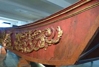 Ornements et dorures de ces décorations appelées "Cortela" appartenant à une galée de la seconde moitié du XVIIe siècle. Il pourrait s'agir des restes de la capitane de Lazzaro Mocenigo, explosée le 19 juillet 1657 aux dardanelles.