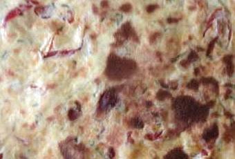 Émietter le thon en le répartissant sur la pâte, ensuite ajouter la julienne de tomates, verser l’appareil dans le moule, donner quelques tours de moulin à poivre de Sichuan.