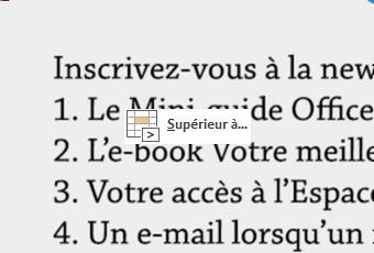 - Inférieur à... qui fonctionne de la même manière que Supérieure à... mais dans le sens inverse ;