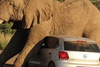 Au Pilanesburg National Park (Afrique du Sud), un éléphant a profité du passage de touristes à bord d’une Volkswagen Polo pour se gratter avec la voiture. Ses propriétaires ont eu la peur de leur vie mais ils ont finalement réussi à s’échapper.