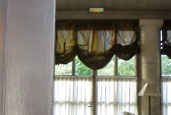 Bientôt je vous montrerai la splendeur des assiettes qui, en hiver, sont servies dans la majesté de la partie restaurant, rénovée en 2002.Sols de tomettes rouges vernissées, cheminée de pierre surmontée de la croix occitane, fauteuils et canapés démesurés de velours safran ou rouge, drapés muraux dans une tonalité cramoisie, lustres géants en plâtre blanc ...