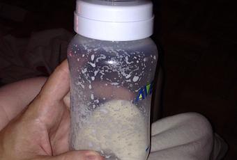 En effet avec le lait en boîte la fin est toujours plus épaisse avec souvent des grumeaux (surtout avec le lait épaissit ou AR). De plus vers la fin du biberon le lait coule moins bien et bébé tète moins fort (il s’endort)