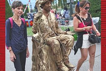 L’argent ne tombe pas du ciel. C’est une devise qui a le mérite de rappeler qu’on ne gagne pas facilement sa vie selon la pénibilité du travail fourni. Je prends comme exemple cet amuseur public. Non seulement il faut se débrouiller pour faire déplacer son lourd attirail mais en plus il doit se maquiller, installer son équipement et rester immobile afin de garder la pause idéale pour les photographes du jour qui constituent l’essentiel de sa clientèle. La petite pièce qui récompense son immobilisme prend du temps pour tomber dans son escarcelle. Et les heures passées dans des conditions climatiques parfois pénibles rendent la tâche plus ardue. Chapeau l’artiste!