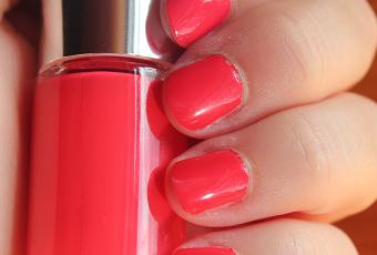 C’est un beau corail très lumineux et qui fait très effet "gel", j’adore cet effet pour l’été !