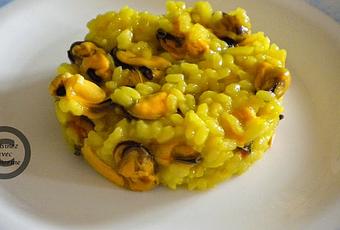 ► Difficulté : ♣ ♣ ►Les ingrédients (pour 4 personnes) : • 200 g de riz rond• 1/2 oignon• 1 cube de bouillon de légumes• 1 l de moules• safran en poudre• 10 cl de vin blanc secTout d'abord, nettoyez les moules, grattez les et éliminez les filaments et lavez-les, égouttez les dans une passoire. Faites cuire les moules dans une cocotte d'eau bouillante avec le vin blanc sec. Lorsqu'elles sont ouvertes, séparer la chair des coquilles, surtout ne jetez pas le jus de cuisson !