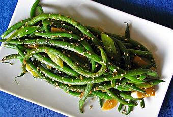 Il existe plusieurs versions de haricots verts à la szechuannaise (aussi orthographié "à la sichuanaise"). Celle que je vous propose est inspirée d'une recette publiée dans la Montreal Gazette il y a quelque temps. Cuits avec de l'ail, du gingembre et du piment, ces haricots vous séduiront à coup sûr. La technique de cuisson des haricots à la szechuannaise est particulière; les haricots sont cuits à sec, dans une poêle ou un wok, avec une petite quantité d'huile. Si vous préférez une technique plus rapide, vous pouvez les blanchir une minute dans l'eau bouillante salée, ce qui vous facilitera grandement la tâche.