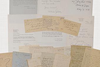 Le 13 août à Amherst, dans le New Hampshire, une vente de manuscrits, documents et autographes verra passer, au lot 665, un ensemble de lettres des récipiendaires du Nobel de littérature. On reconnaît en bas à droite de l'image une lettre de Gide, mais impossible d'en connaître ni le destinataire, ni le contenu.
