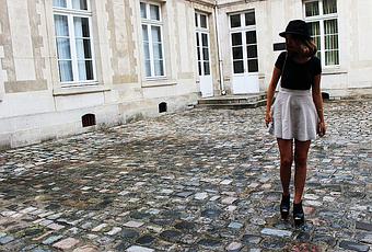 Jupe: Pimkie | Crop top: Brandy Melville | Sac: Friperie | Chapeau: H&M | Chaussures: New Look | Vernis: American Apparel "The Valley" | Ràl: Kiko 606 | Bague: New Look | Bracelet: Friperie