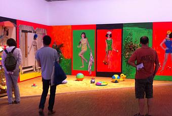 L'exposition suit un déroulement chronologique, des premières œuvres très inspirées du pop art aux peintures les plus contemporaines, grandes fresques colorées de personnages contemporains. Ce qui est très perturbant et assez agaçant, c'est l'absence totale de panneaux de salle. En gros, vous vous repérez grâce aux dates inscrites sur les cartels. Vous ne connaissez le contexte de création que dans les rares cas de cartels un peu bavards. Bref, j'ai l'impression de me répéter mais un musée doit un minimum donner des infos à son visiteur sinon ça s'appelle une galerie ! Alors, certes, il y a un petit dépliant mais ça ne vous éclaire pas vraiment sur les parties de l'expo. D'ailleurs, peut-être n'y en a-t-il pas ? Car les cimaises ont beau marquer un chemin, elles ne rendent pas spécialement une progression.