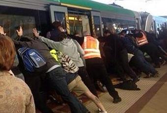 (Clic) Une TRÈS belle news arrivant droit d'Australie, c'est à Perth que ça se passe, un homme coince sa jambe entre métro et quai, que croyez-vous qu'il arriva ? Que le malheureux a eu sa jambe arrachée ? Qu'il fut pulvérisé par le monstre d'acier qui repartait ? Non, non, non, rien de tout ça car... la foule-Zorro est arrivée : hommes, femmes, enfants, vieux, jeunes, flics, SDF, gros, maigres, blacks-blancs-yellows, z'ont tous pognés dans un bel élan commun - magnifique, incroyable, geste collectif - le wagon, l'ont littéralement soulevé ! Dégageant ainsi le malheureux de son carcan.