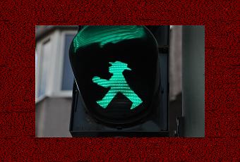 Créés en 1961 par Karl Peglan, le bonhomme vert et son pendant rouge (interdiction de traverser) identifiaient les feux de Berlin-Est; la chute du mur devait entraîner... l'extinction de ces feux. C'était compter sans la flamme des Berlinois de l'Est, farouchement attachés à ce symbole identitaire. Ils furent donc replacés, conservés et même étendus à des quartiers de l'Ouest..tant ils sont engageants...