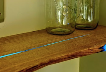 Il y a quelques jours, au Royaume-Uni le designer industriel et bijoutier Mat Brown a partagé avec la communauté Reddit son idée géniale pour combler les fissures de vos étagères. Il mélange de la résine standard avec de la poudre mystérieuse qui s’illumine dans l’obscurité. Un design peu commun, à la portée de tous que vous pouvez réaliser à la maison grâce à son tutoriel très détaillé sur son blog.