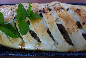 - Étaler la pâte brisée, la disposer sur du papier sulfurisé, mettre la farce au centre puis tresser ( voir les photos).