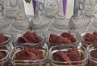 j’ai ajouté un carré de chocolat blanc au milieu de chaque pot