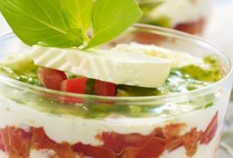 4° Disposez une couche de pesto et décorez. Servez bien frais.