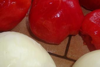 Pendant que les oignons dorent, couper les tomates en fines rondelles, que l'on coupera en 4.