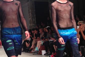 Vacances aux Maldives avec Rynshu…La collection Rynshu met à l’honneur l’univers aquatique et le cadre idyllique des Maldives. Des photographies de l’archipel et du sable (donnant l’aspect de petits galets) composent les imprimés phares de ce vestiaire estival qui joue avec la transparence et la légèreté. Et cette sensation est apportée en autre par du cuir ultra fin, perforé, combiné parfois à de la dentelle, par des chemises fluides en soie ou des vestes brodées de rubans colorés sur une base de tulle reproduisant l’effet d’écailles de poissons. L’absence de col ou de revers confère encore plus de liberté aux vêtements. De nombreux zips s’ouvrent ou se ferment à volonté et structurent des pantalons étroits ou des blousons de motard. Les chemises sont parées de cravate en ton sur ton ou se drapent dans un motif rayure. Une collection unisexe, qui décloisonne les genres avec pour maître mot «Happy Mind» !