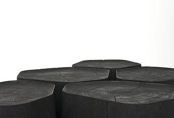 Normal Studio, formé par les designers français Jean-François Dingjian et Eloï Chafaï nous présente BASALT, un ensemble de 5 tables basses en bois brûlés.