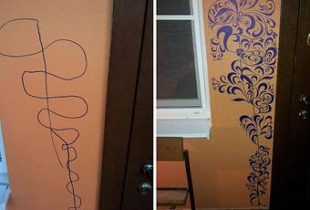 L'enfant a fait un vilain dessin au feutre indélébile sur le mur. Maman l'a artistiquement arrangé.