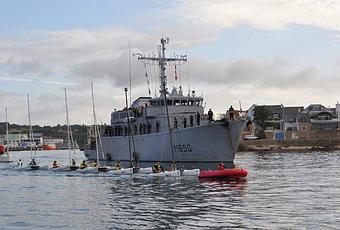 Comme chaque année la Marine Nationale est présente aux festivités des Filets Bleus. Le SagittaireM650 a fait son entrée au portjeudi 14 août, c’est son premier retour depuis 2005 quand la ville de Concarneau est devenue marraine du Chasseur de mines. (Tradition des parrainages militaires)