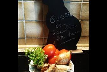 Il me restait de la rouelle de porc et comme je n’aime pas trop la viande froide, j’ai eu l’idée de l’accommoder avec des tomates !