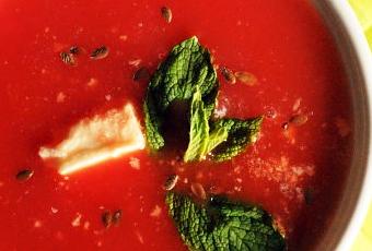 Mixer la pastèque avec le melon, la menthe et l’huile d’olive.