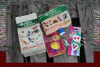 Côté alimentation, nous trouvons dans la box deux produits de la marque Equilibre et Instinct: des croquettes de viandes fraîches et 4 sachets d’émincés en sauce. Nounoune ne mange que des croquettes pour chatte stérilisée, mais apparemment ces croquettes sont aussi adaptées aux chats dans cette situation (contrôle du poids, préservation du système urinaire…) donc c’est très bien. Elle testera les sachets même si les boulettes et autres pâtées ne sont pas ce qu’elle préfère. Madame ne mange même pas de poisson frais (et elle a laissé les coquilles Saint-Jacques que la voisine lui avait données!).