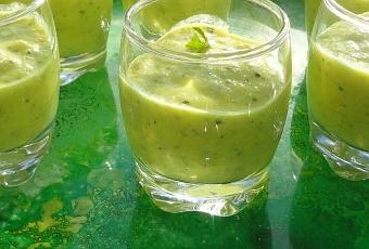Mixer les courgettes avec une louche de jus de légumes de cuisson et la crème avec le chèvre et 2 cuillères à soupe d'huile d'olive.