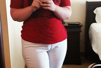Aujourd'hui j'ai opté pour la version pantalon 3/4 blanc avec un t-shirt rouge!