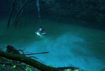 Au Mexique, dans l’Etat du Yucatan, si vous faites de la plongée sous-marine vous pourrez découvrir dans le Cenote Angelita une rivière sous la mer !
