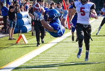 Un morceau de robot à #5 P. Enchill pour une longue réception du bout des doigts à pleine vitesse, et d'avoir conservé le ballon en roulant au sol après...