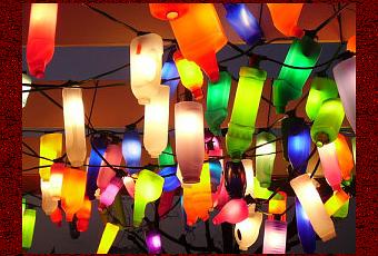 Utiliser les fonds de bouteilles que vous aurez repeint puis collés.