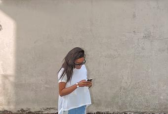Je porte un jupe et des chaussettes Asos, un top Brigitte Bardot, un bracelet Zara, une montre Michael Kors, des lunettes Saint Laurent et des baskets Isabel Marant.