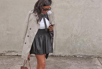 Je porte une jupe et un trench Zara, une chemise H et M, un gilet Asos, des escarpins Christian Louboutin et un sac Louis Vuitton.